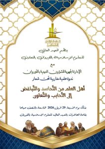 القيروان: ندوة علمية مغاربية بعنوان””أهل العلم من التحاسد والتباغض إلى التحابب والتعاون”.