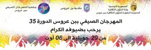 بن عروس:عروض فنية متنوعة في الدورة 35 للمهرجان الصيفي تحت اشراف وزارة الشؤون الثقافية تنظم المندوبية الجهوية بولاية بن عروس من 29 جويلية الجاري إلى 7 أوت القادم بمسرح الهواء الطلق ببن عروس فعاليات الدورة 35 للمهرجان الصيفي حيث يفتتح هذا المهرجان بكرنفال الشارع يليها العرض الموسيقي والكوميدي”ديما نضحك ديما زاهي”وهو من إخراج محمد منير العرقي ليكون الموعد يوم 30 جويلية الجاري مع عرض”مهرجون”وعرض” العرائس”وتكون السهرة يوم 31 جويلية مع عرض لجعفر القاسمي ليسهر جمهور المهرجان يوم 1 أوت القادم مع عرض “العزوزية” ليحيي سهرة يوم 2 أوت القادم الفنان زياد غرسة وتكون السهرة يوم 3 أوت القادم مع الفن الرابع من خلال عرض مسرحية “لاحق نشاد”لأنور حرزالي ومسرحية” تفريكة” للثنائي لسعد عثمان والمنجي بن سعيد لتعتلي الفنانة منى نور الدين ركح المهرجان يوم 4 أوت القادم لتقدّم عملا مسرحيا ترصد مداخيله للفنان صبري الجندوبي ابن الجهة لتكون السهرة يوم 5 أوت القادم مع عرض” ألف ليلة وليلة”وتكون سهرة يوم 6 أوت القادم شبابية مع عرض جنجون فاختتام سلسلة هذه السهرات الموسيقية والمسرحية يوم 7 أوت القادم .
