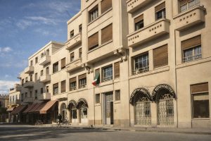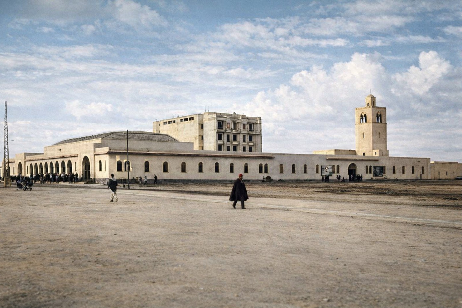 على امتداد شاطئ الكورنيش كان يقوم السوق المركزي، ذلك الفضاء التجاري الذي جمع أهل المدينة وربطهم بيومياتهم وحاجياتهم، وقد ظل شاهداً على حركة المدينة وتدفق حياتها الاقتصادية قبل أن تُعيد إليه التحولات اللاحقة ملامح مغايرة. وليس بعيداً عن ذلك، كانت شوارع المدينة تسير في صمت هادئ، تعكس فيها واجهاتها الاستعمارية والعربية المتداخلة روحاً معمارية تمزج بين الموروث المحلي والتأثير الأوروبي الذي رسّخته عقود من الحضور الفرنسي.