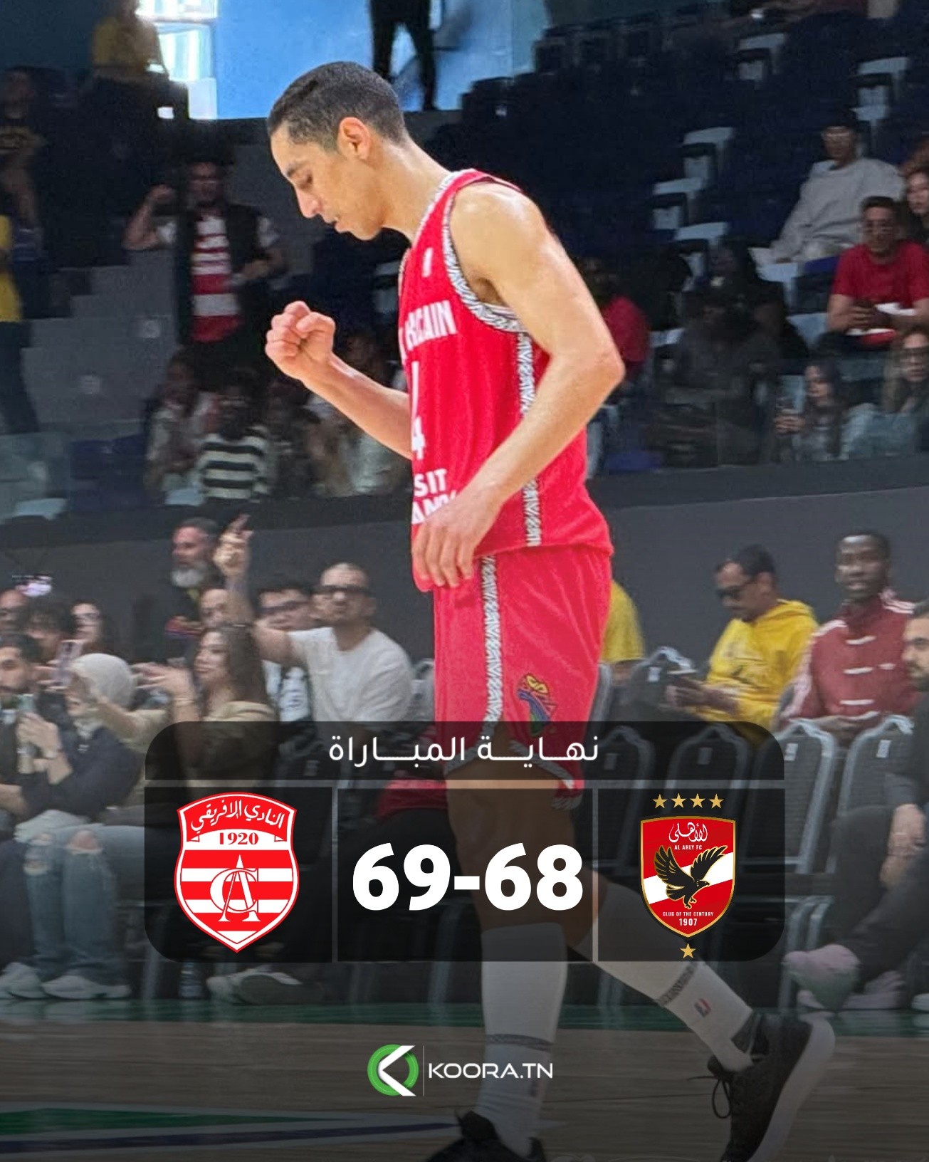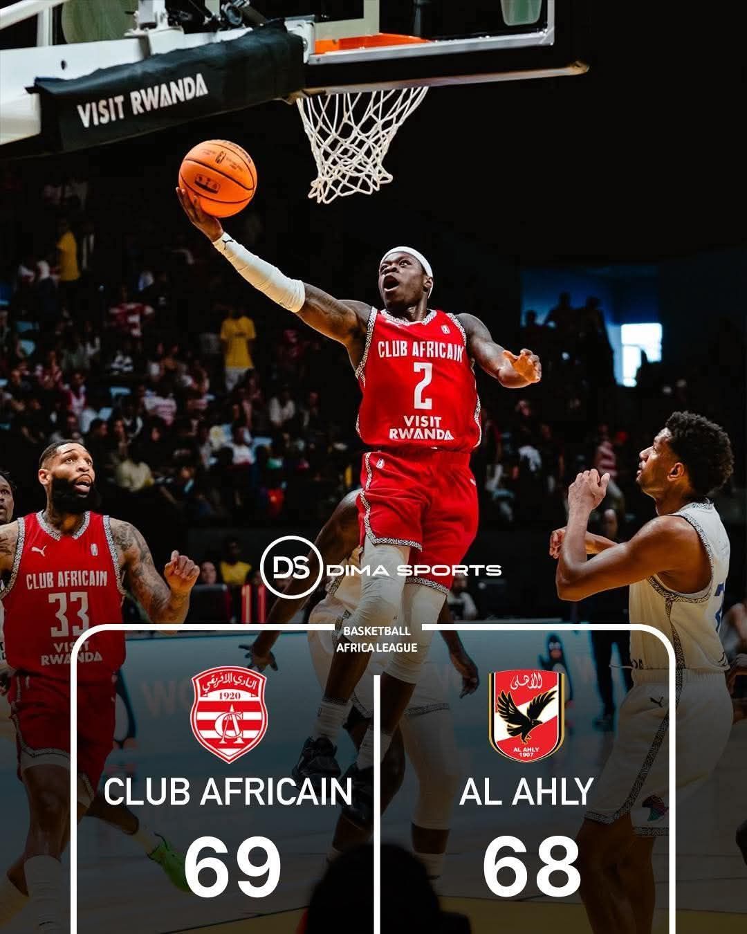حقق النادي الإفريقي فوزًا ثمينًا ومثيرًا على حساب الأهلي المصري بنتيجة 69-68، في مباراة قوية احتضنتها منافسات الدوري الأفريقي لكرة السلة (Basketball Africa League) اليوم 25 أفريل 2026.