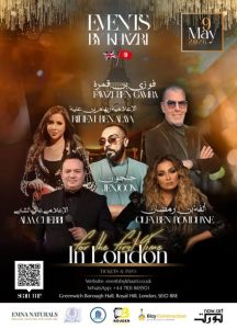 هي بادرة من ابن وادي مليز الشاب محمد الخزري إذ ولاول مرة تستضيف العاصمة البريطانية لندن سهرة فنية تونسية مميزة تجمع بين الطرب الأصيل، الراب، والمزود في عرض واحد يجمع كل الأذواق الفنية وذلك يوم 9 ماي القادم وإذ ينشط السهرة الثنائي الإعلامي علاء الشابي وزوجته الصحفية ريهام بن علية فسيكون لجمهورها من الجالية التونسية بلندن موعد مع نخبة من الأسماء الفنية اللامعة وهم جنجون، ألفة بن رمضان، فوزي بن قمرة يشار الى ان منظّم هذا الحفل له تجربة مهمة في تنظيم حفلات مماثلة بتونس وخاصة لدى اشرافه على إدارة فعاليات مهرجان”شمتو”للتراث والفنون الصيفي بوادي مليز من خلال ترؤسه لجمعية”نا نحلم”حيث استقطب المهرجان كبار الفنانين والمسرحيين التونسيين بالأساس وسيمزج الحفل المبرمج في العاصمة اللندنية تحت عنوان”تونس في لندن”بين الراب المعاصر والطرب الأصيل والأجواء الشعبية التونسية عبر كوكتال من الأغاني التونسية في مختلف الأنماط الموسيقية وفي تنشيط تلقائي لعلاء الشابي وريهام بن علية ضمن سهرة عائلية تونسية حميمية تدغدغ حنين أبناء تونس بالخارج الى وطنهم الام وتعمّق فيهم روح هويتهم التونسية الشعبية الاصيلة والصرفة.
