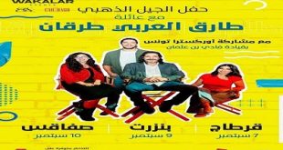موقع جريدة بالمرصاد نيوز الإلكترونية تشهد عملية بيع تذاكر حفلات الجيل الذّهبي مع طارق العربي طرقان و أبنائه في قرطاج وبنزرت وصفاقس اقبالا كبيرا حسب تاكيدات من الجهة المنظمة للسهرة. وستكون هذه الحفلات في قرطاج يوم 7 سبتمبر وبنزرت يوم 9 سبتمبر وصفاقس يوم 10 سبتمبر لتكون هذه الجولة هي …