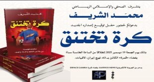 الإعلامي الرياضي الأستاذ محمد الشريف بالمرصاد نيوز – تونس العاصمة عمل من إعداد الصحفي بدرالدين الجبنياني بمناسبة إصدار كتابه الجديد بعنوان «كرة تختنق»، والذي يأتي بعد كتابه الأول «قصص أولمبية لم يروها أحد» الصادر في بداية شهر ديسمبر 2023، تم تحديد موعد …